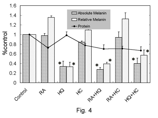 of melanogenesis. The synergistic effects between RA, HQ, and